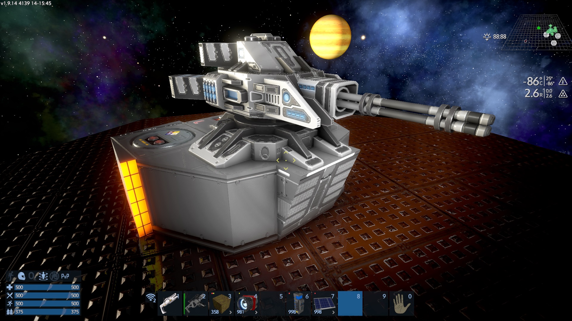 A deployable sentry turret in in response to Tactical play and POI's in the form of a stripped down HV. Requires a 2x 2 space to be spawned inside a base or CV but can easily be trimmed down to fit in a 1x1 space. Can serve to cover you from being flanked inside a POI or as early game defense for your camp before setting up a base. Blueprint attached. Use it, sell it, burn it...I don't care.